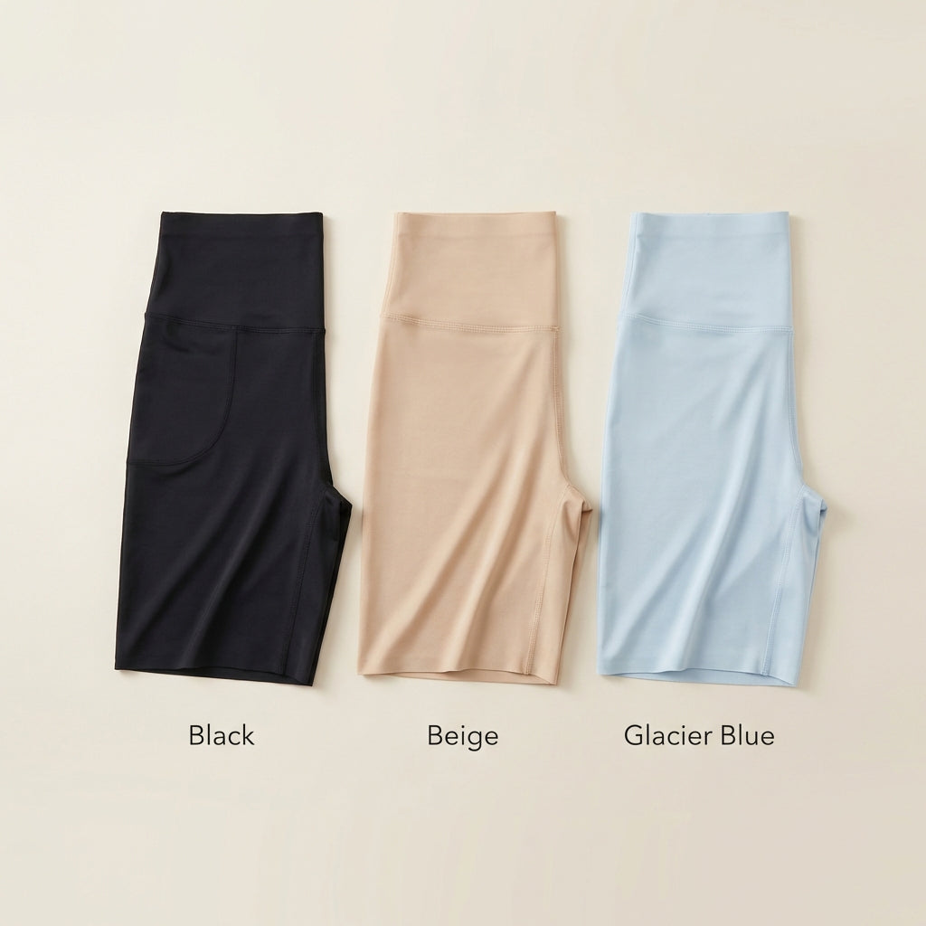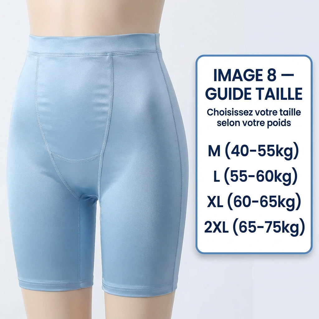 Non. La bande taille anti-glisse maintient le short en place même sous robe moulante, sans compression excessive.